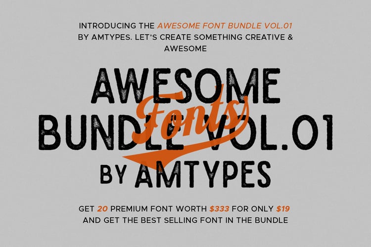 Introducing the awesome font bundle vol.01 By amtypes. Let’s create something creative & awesome. Get 20 premium font worth $315 for only $25 And get the best selling font in the bundle